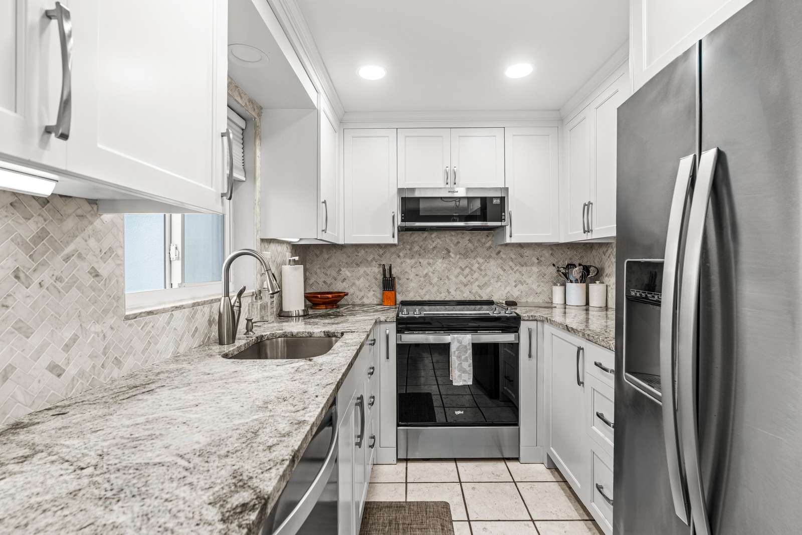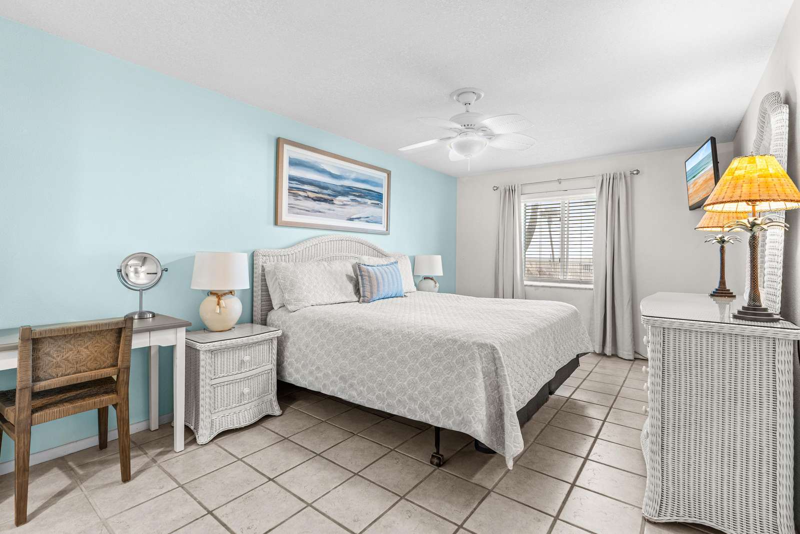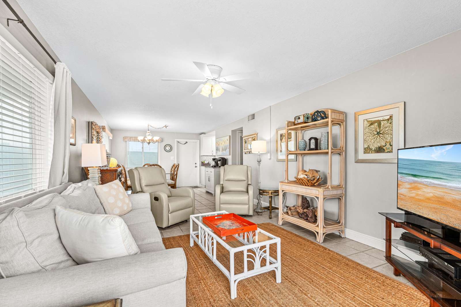 2 bedrooms with 2 baths. Master bedroom has king bed. Second bedroom includes two queen beds. Combined living room and dining area with full kitchen. Corner-wrapped patio allows you to view the ocean from two sides, and the ground-floor location walks out directly toward the beach. You can go from the sofa to the ocean in mere seconds! Large pool is also just outside the patio.