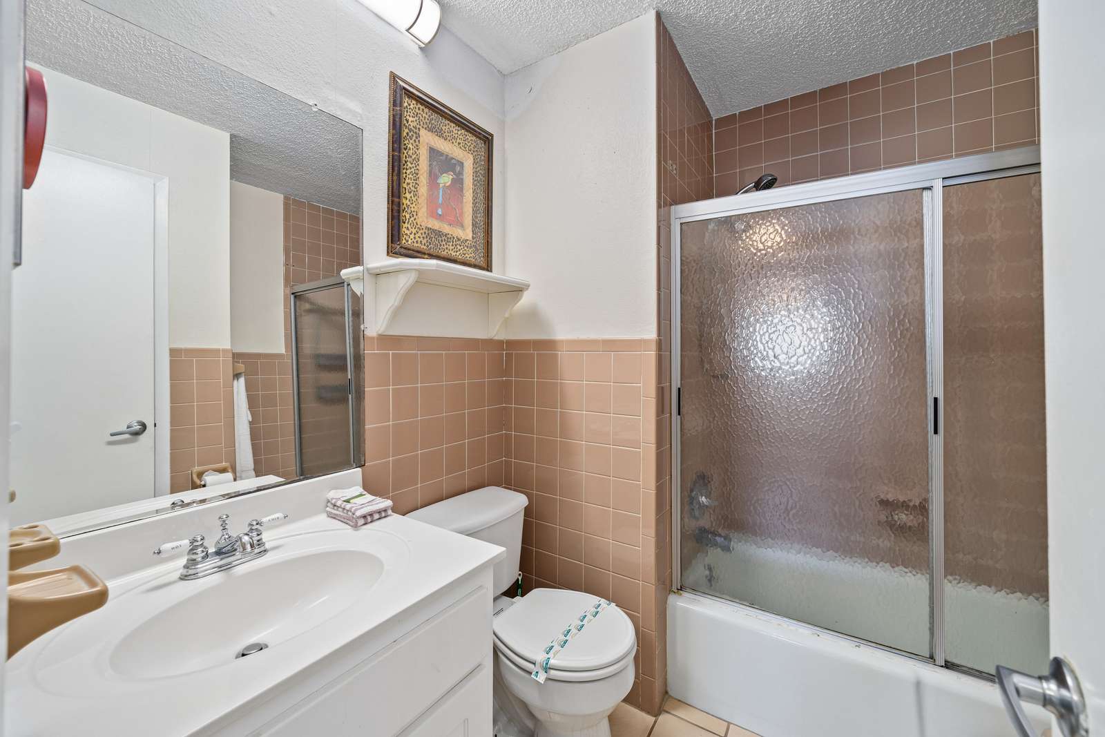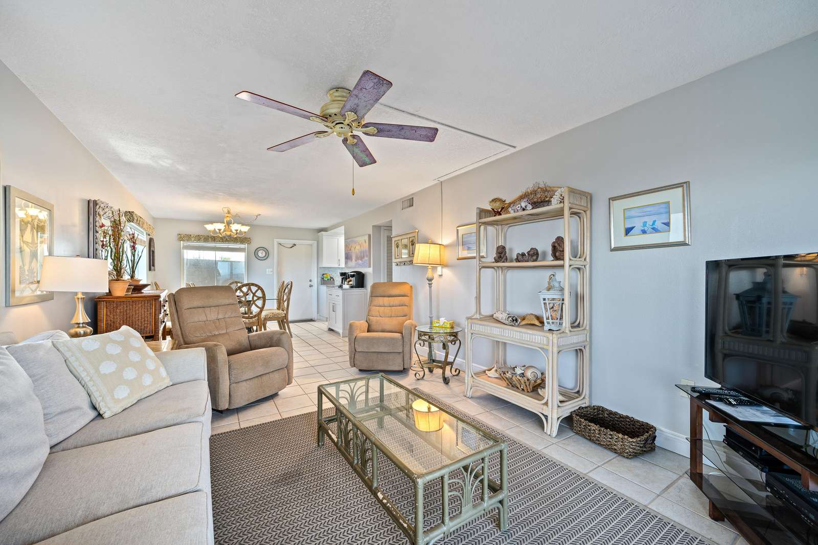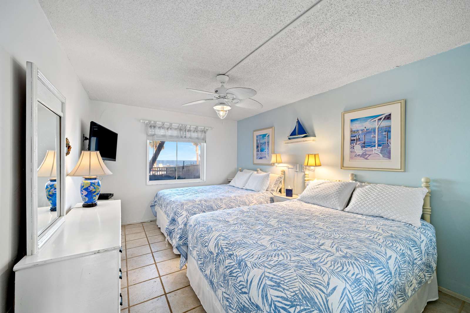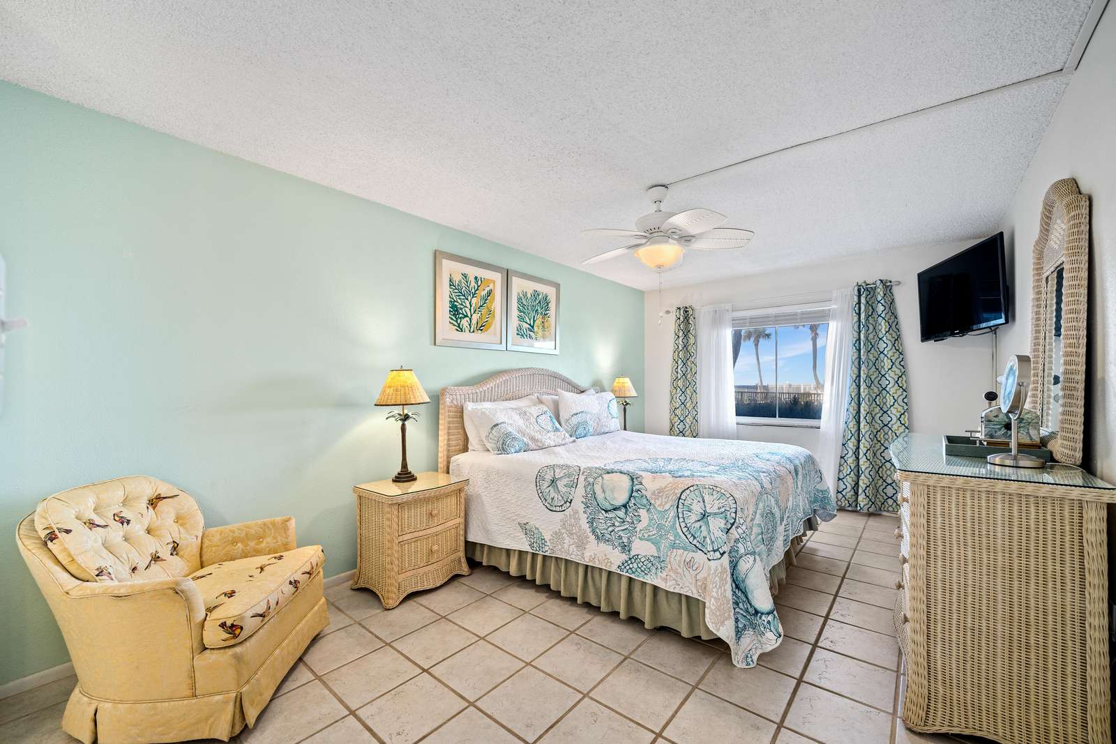 2 bedrooms with 2 baths. Master bedroom has king bed. Second bedroom includes two queen beds. Combined living room and dining area with full kitchen. Corner-wrapped patio allows you to view the ocean from two sides, and the ground-floor location walks out directly toward the beach. You can go from the sofa to the ocean in mere seconds! Large pool is also just outside the patio.