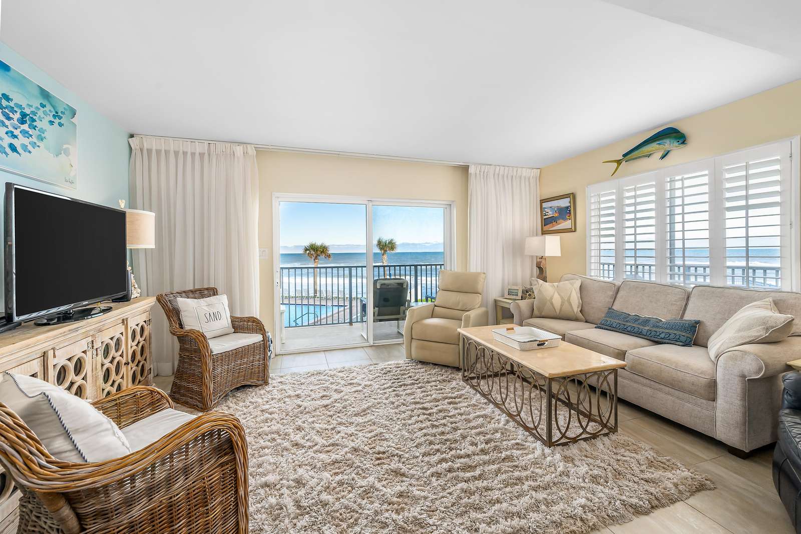 Wonderful second-floor, ocean-front two-bedroom condo. Great beach and pool.